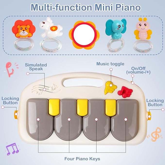 - Playtime: The interactive tray keeps babies entertained with stimulating activities and toys.